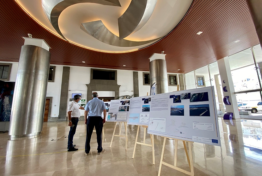 Los paneles de los proyectos ‘Nuevo acceso al recinto portuario de Puerto del Rosario (Fuerteventura)’, ‘Nuevos viales de acceso a la Terminal Interinsular del Puerto de Las Palmas’, ‘Contradique sur del Muelle de Naos, Puerto de Arrecife (Lanzarote)’ y ‘Prolongación del Muelle de Los Mármoles, Puerto de Arrecife (Lanzarote)’ se encuentran expuestos en el vestíbulo de la APLP.