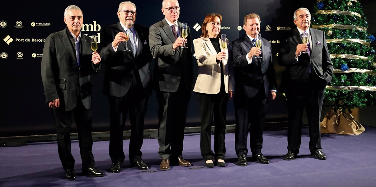 Salvador Richart (Asociación de Consignatarios), Javier Vidal (Asociación de Empresas Estibadoras), José Alberto Carbonell (Port de Barcelona), Sílvia Paneque (Generalitat de Catalunya), Antonio Llobet (COACAB) y Emili Sanz (ATEIA-OLTRA Barcelona). Foto M.V.