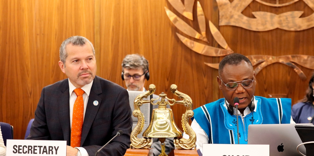 Arsenio Domínguez, secretario general de la OMI (izquieda), y Harry T. Conway, presidente.