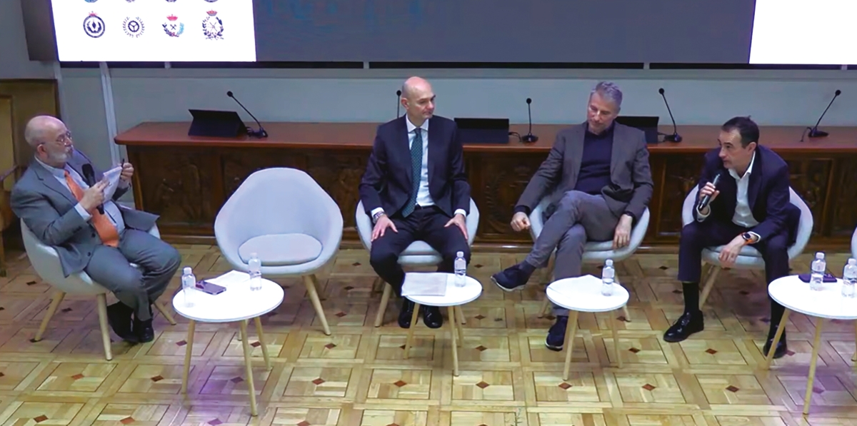Rafael Gutierrez Fraile, presidente del comité de asuntos marítimos del IIE; Luis de Carlos de Worley Consulting; Raul Cascajo, especialista en transporte marítimo; y Juan Diego Pérez Freire, director general de la Autoridad Portuaria de A Coruña.