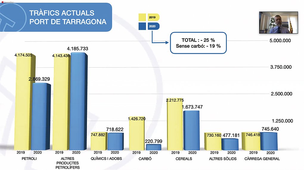 Josep Maria Cruset ha hecho estas declaraciones durante la celebración de un webinar organizado por la Cámara de Comercio deTarragona y el Cercle de Infraestructures, donde ha desgranado la estrategia que va a seguir la Autoridad Portuaria de Tarragona a corto y largo plazo para hacer frente a la crisis.