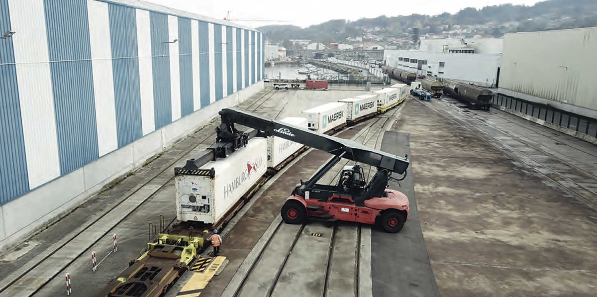 Al importante movimiento de ferrocarril para mercancías como graneles agroalimentarios o productos siderúrgicos se une ahora la recepción de varios trenes semanales que llegan al Puerto de Marín con contenedores de la naviera Maersk procedentes de terminales interiores como Zaragoza y otras.