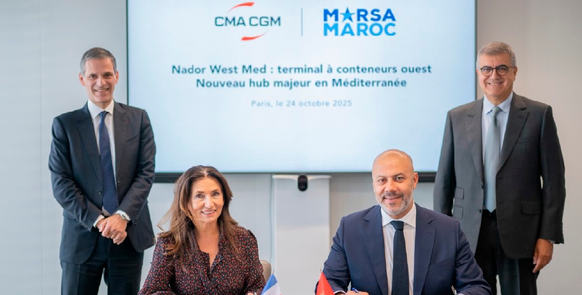 Tras la firma, en octubre de 2024, de un acuerdo marco global entre el Grupo Tanger Med y CMA CGM, Marsa Maroc y CMA Terminals anuncian hoy la firma de un acuerdo de colaboración que marca la entrada de CMA Terminals en el capital social de la empresa concesionaria de la Terminal Oeste del Puerto de Nador West Med, un importante puerto marroquí situado en el Mediterráneo.