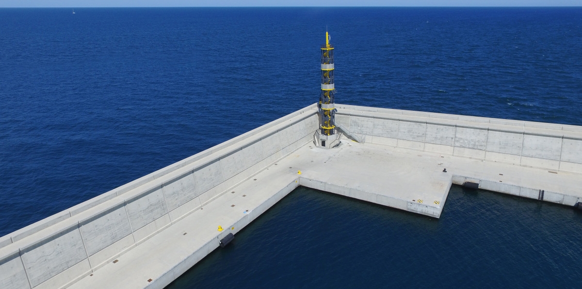 El faro está situado en la ampliación norte del puerto de Valencia y se puso en marcha en verano de 2015. Para comprobar la durabilidad y eficacia de esta infraestructura se introdujeron unas probetas extraíbles para realizar ensayos en laboratorio para mostrar su capacidad de resistencia al envejecimiento.