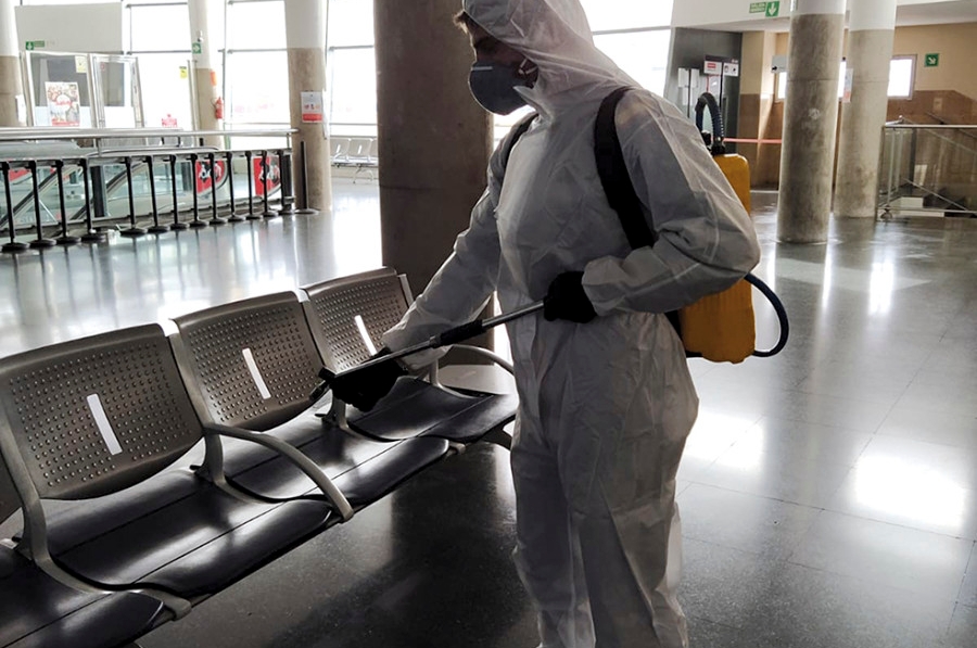 Los trabajos se han centrado en la desinfección de las dos terminales de pasajeros. Foto de la UME facilitada por el Departamento de Comunicación de la APV.