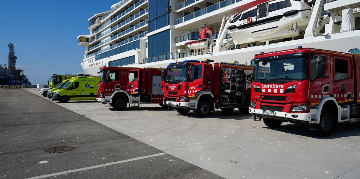 En el buque se estableció una zona segura en la cubierta 2, desde la cual se coordinó la actuación de todos los equipos de emergencia que accedieron al interior para realizar el simulacro. Una vez alcanzada la zona cero del supuesto incidente, los equipos confirmaron que se trataba de un incendio y verificaron la existencia de dos personas afectadas, una de las cuales fue rescatada mediante un sistema de extracción vertical por los Bomberos de la Generalitat. La víctima fue trasladada a la zona segura, donde recibió atención médica.