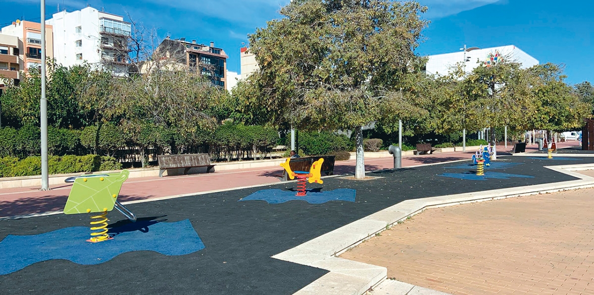 Estas actuaciones tienen como objeto principal la mejora de la seguridad, y por ello se ha sustituido el pavimento existente por uno absorbedor de impactos, tanto en el suelo ocupado por tobogán y muelles como en el perímetro del mural cerámico.