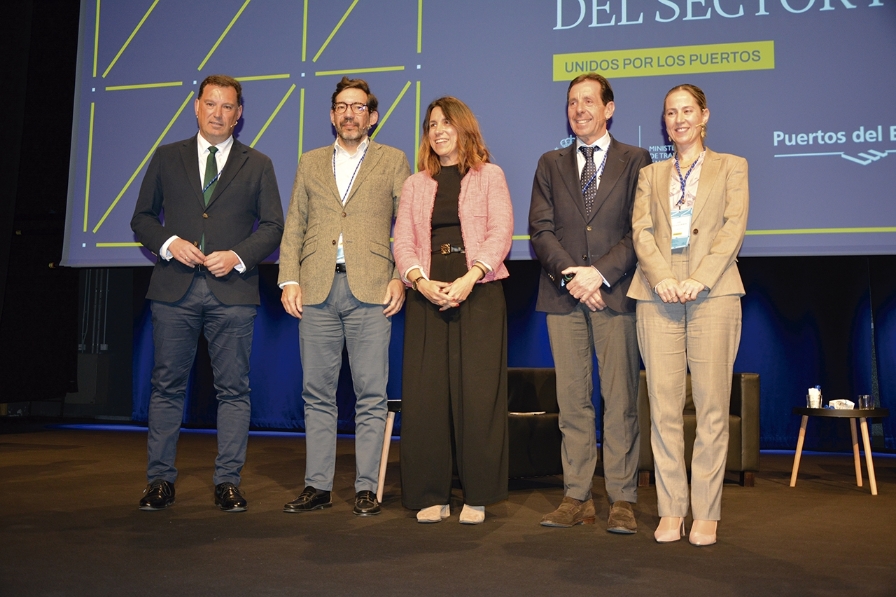 Alberto Santana, presidente de la AP de Huelva; Manuel Pastor, director del Instituto Nacional de Administración Pública; Mercedes Pardo, CEO del Instituto Marítimo Español; Andrés Menéndez, director general de staffing y RIS de Randstad y Sara Recatalá, miembro de la junta directiva de WISTA. Foto J.C.P.