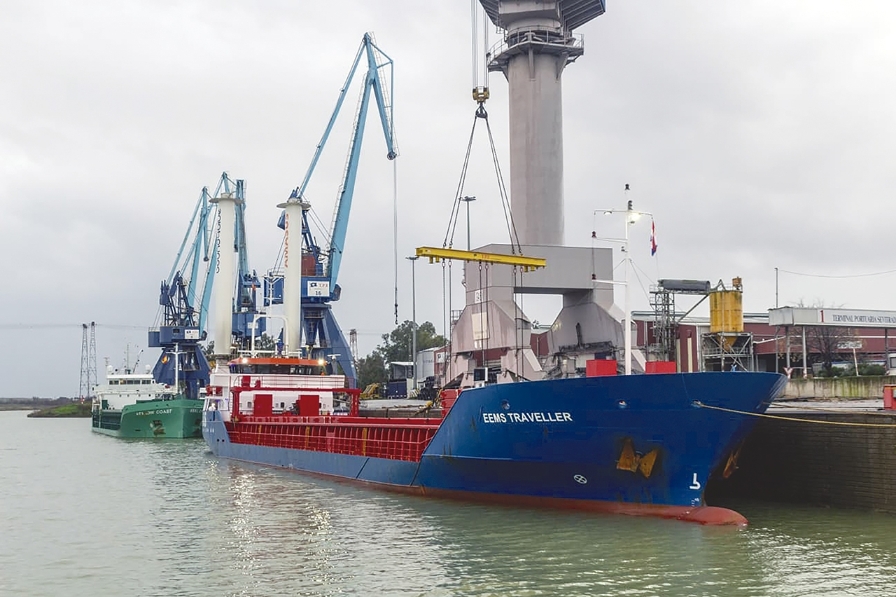 El “Eems Traveller” atracó en la Terminal Portuaria Esclusa, donde Sevitrade coordinó la consignación, estiba y almacenamiento de la carga: piezas de acero que TECADE empleará para el proyecto BalWin 1.