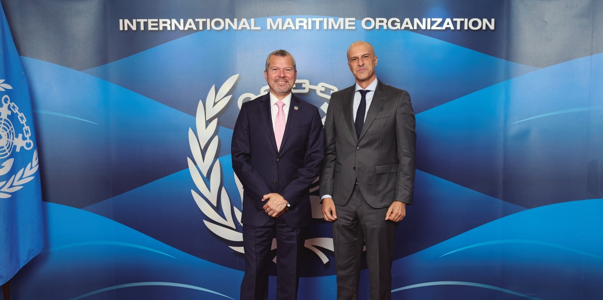En la imagen, Víctor Jiménez, representante de España ante la OMI, junto al secretario general de la OMI, Arsenio Domínguez.