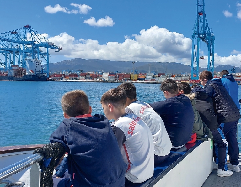 El Colegio Divina Pastora de Facinas (Tarifa) ha sido el primero en disfrutar de una experiencia cuyo objetivo a bordo del “Jackelin” es que los alumnos de los centros educativos del entorno del Puerto de Algeciras conozcan la actividad portuaria y puedan contemplar desde el mar el trabajo que se desarrolla en las terminales de contenedores, la terminal de pasajeros o en las industrias de la Bahía, entre otras instalaciones.